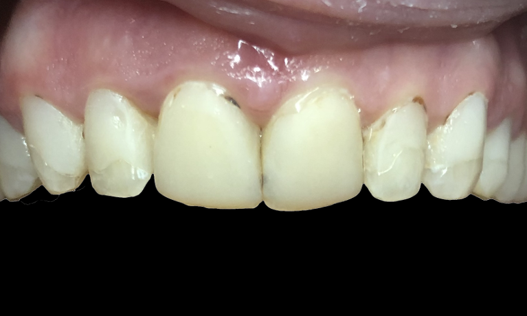 This patient suffered from cavities on her front teeth that affected her smile for years. We placed ceramic crowns to restore her beautiful smile.